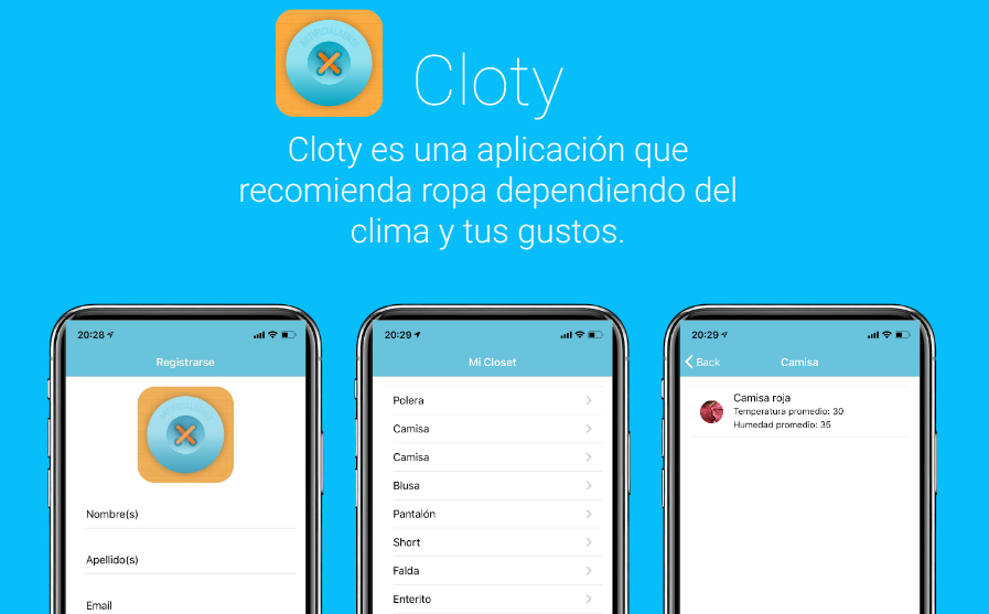 Cloty es un proyecto experimental que permite registrar tu ropa creando un “Ropero”, el cual te ofrece una cantidad de ropa según la categorización disponible en el sistema. Al registrar tu ropa, tienes la posibilidad de registrar una foto de ella.